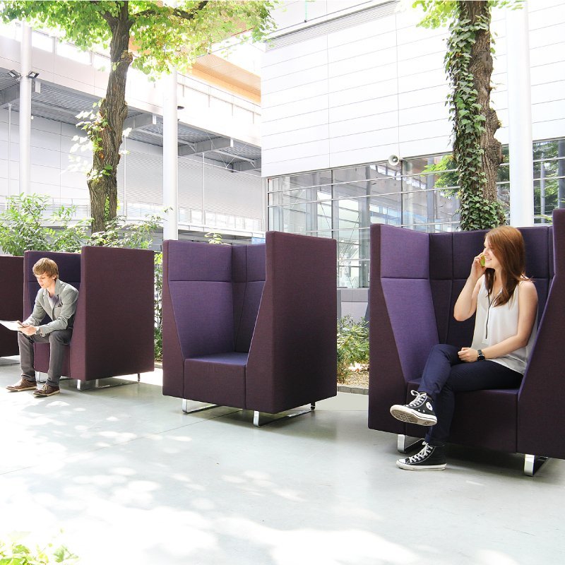 De geluiddempende 1-persoonsbank creëert een afgeschermde plek in drukke openbare ruimtes. Door de akoestiek is het zitmeubilair ook uitstekend te gebruiken als plek om in alle rust te bellen. Ideaal om binnen een grote kantoortuin een moment van rust te pakken.