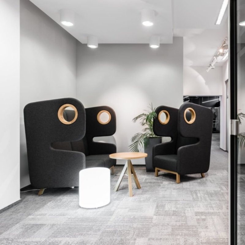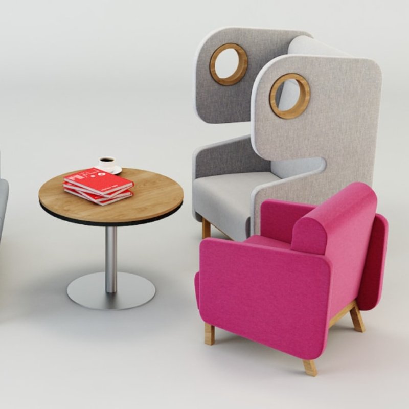 De akoestische oorfauteuil Packman heeft niet alleen een vrolijke uitstraling, maar is ook ideaal als u op kantoor even rustig wilt telefoneren of op uw laptop wilt werken. Door de hoge rug en zijpanelen heeft u privacy en worden geluiden gedempt.