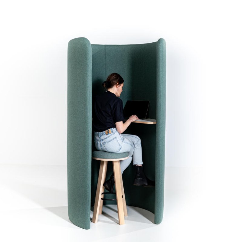 Maak de half-open akoestische telefooncel compleet met de bijpassende BuzziMilk hoge kruk.