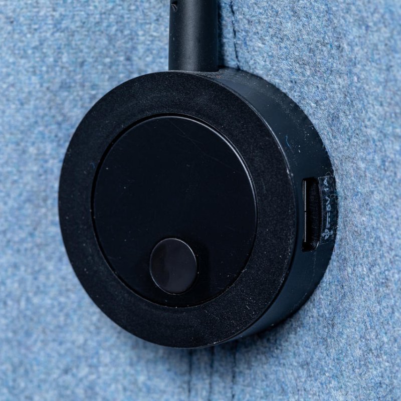 De halfgesloten privacy werkplek BuzziHug is ideaal voor telefoongesprekken, video meetings en individuele focus taken. De grote cilinder met akoestisch schuim zorgt voor een warme omhelzing waarin prettig gewerkt kan worden.