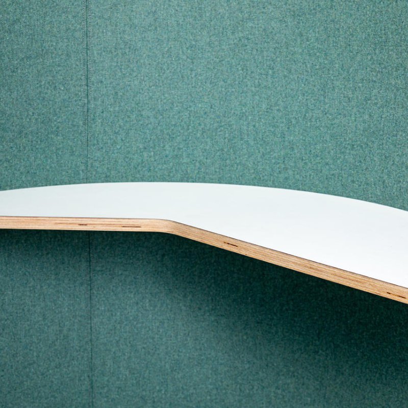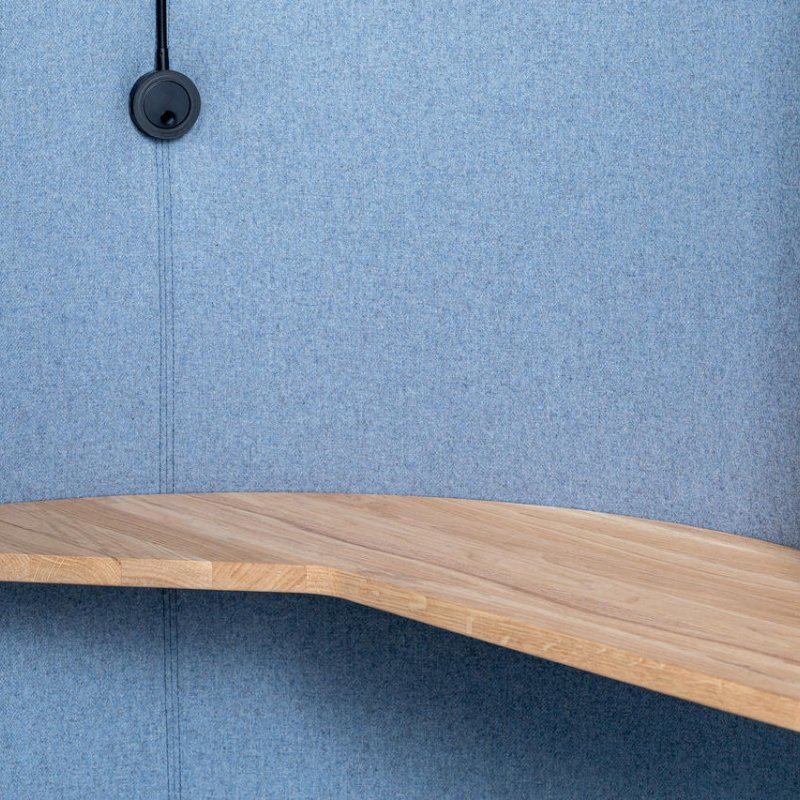 De akoestische werkplek is voorzien van een tafel in laminaat of eiken. Optioneel is het meubel uit te breiden met een LED lamp en twee USB laders. Snoeren worden netjes naar buiten geleidt door de rits aan de achterzijde.