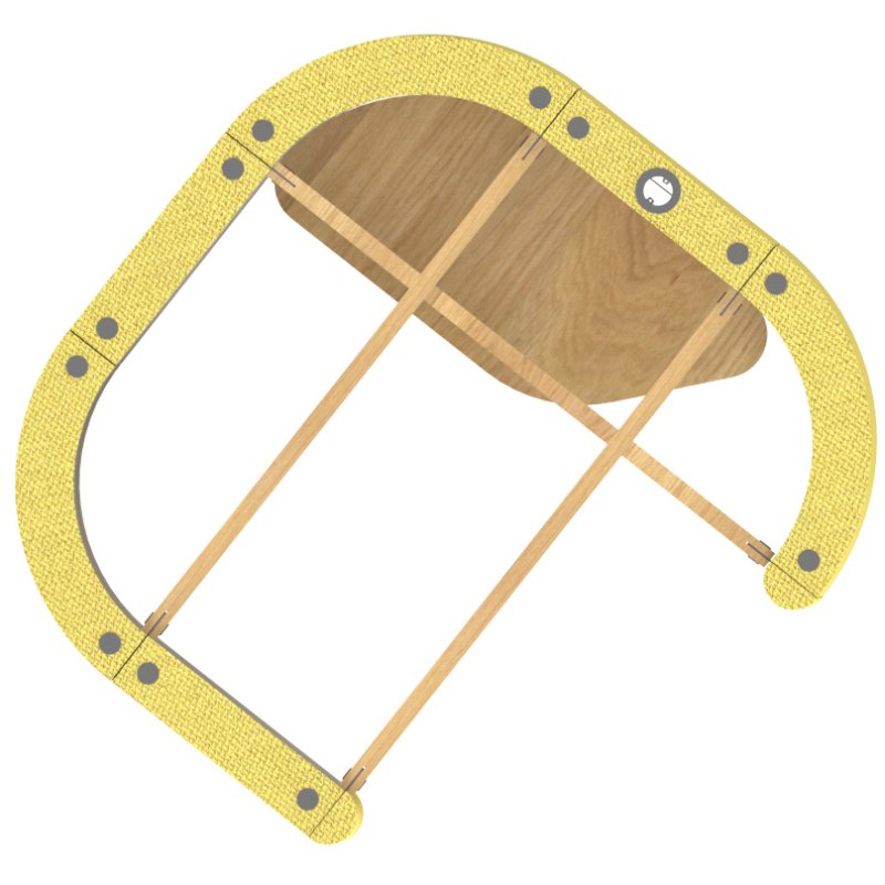 Rondo is voorzien van een stalen plint in het zwart (RAL 9005). Het plafond van de akoestische cabine bestaat uit massief eiken houten balken, leverbaar in verschillende kleuren. De balken worden standaard kruislings geplaatst.