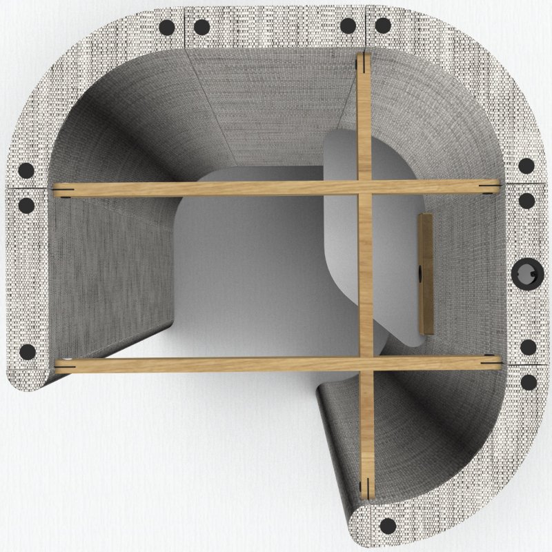 De geluidsabsorberende 1-persoonswerkplek is leverbaar in verschillende kleuren en stoffen. De stoffen waaruit u kunt kiezen zijn voorzien van de juiste akoestische eigenschappen. Duo-stoffering (voor de binnen- en buitenzijde) is tegen meerprijs mogelijk.