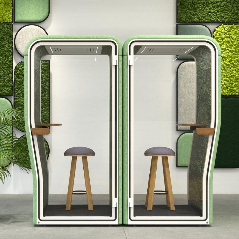 Naast BuzziNest Booth is er ook een akoestische overlegplek: BuzziNest Pod. Een grotere unit geschikt voor maximaal 4 personen.