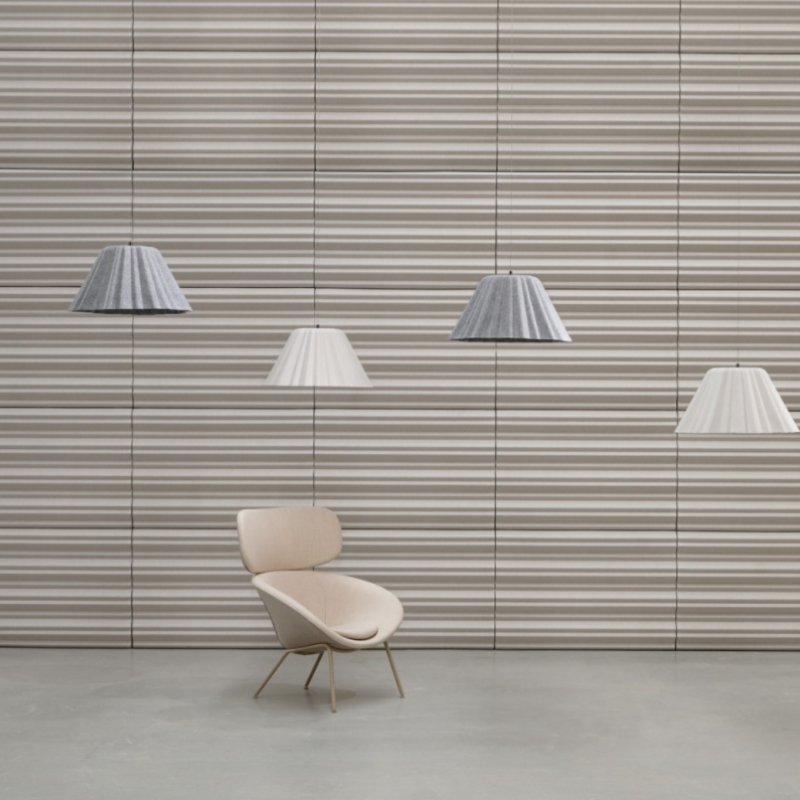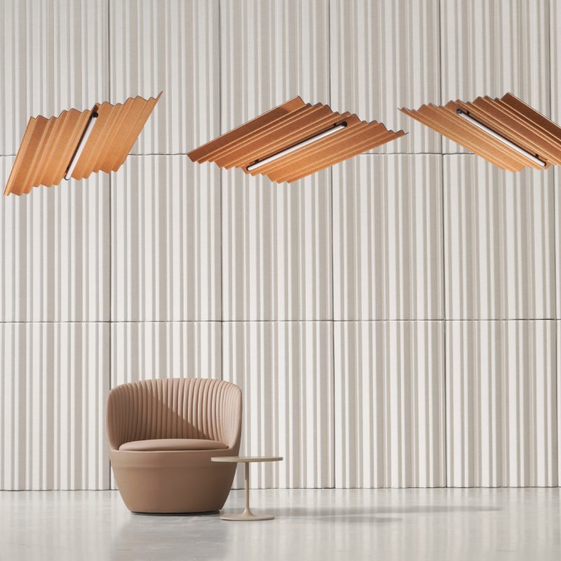 Dit akoestische paneel heeft een rechte afwerking, liever dit paneel met aan de boven en onderkant een geribbeld effect zoals de rest van het paneel? Bekijk dan akoestisch paneel Cracker of als u akoestische verlichting met dit design zoekt zie dan akoestisch plafondpaneel Cracker Cloud.