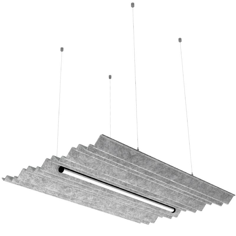 De akoestische verlichting kunt u aan het plafond ophangen via staalraden.