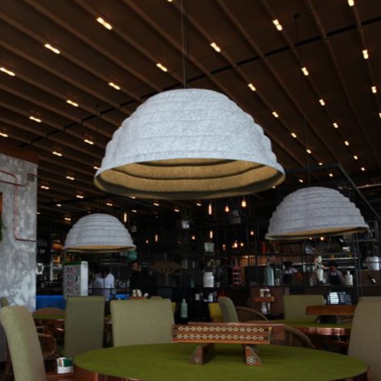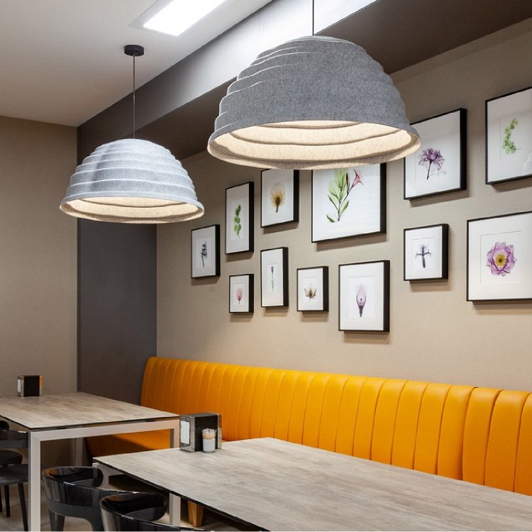 Akoestisch hanglamp Topolight komt uit de NewGlow collectie van Feltouch en biedt een akoestische oplossing met LED verlichting voor uw interieur.