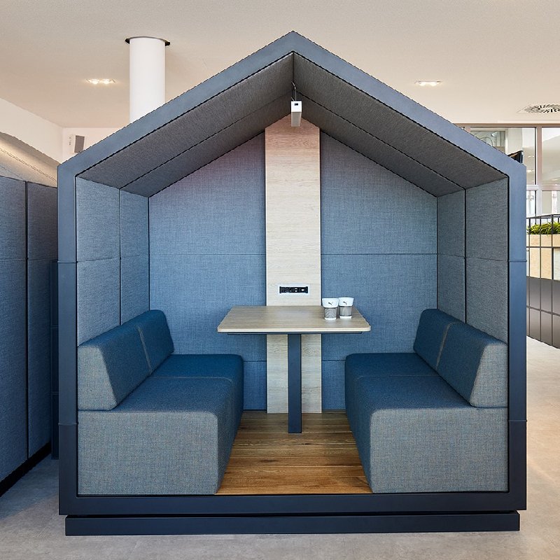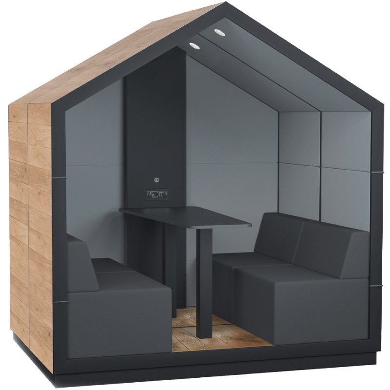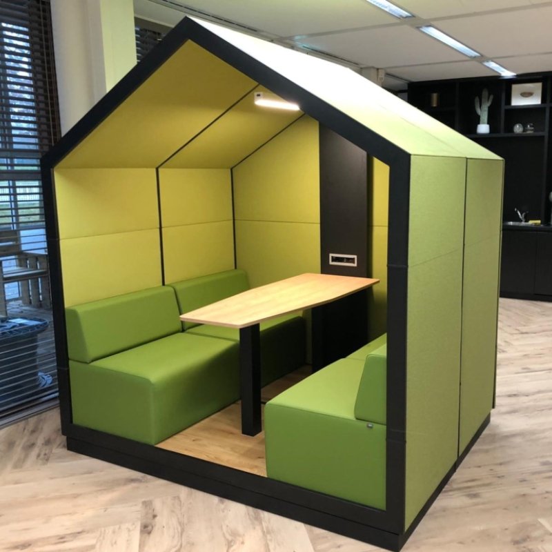 Maar de akoestische vergaderruimte is vooral een multifunctioneel stukje meubilair voor op kantoor. Tree House Double is ideaal als overlegplek maar kan ook gebruikt worden als werkplek ter afwisseling van de traditionele werkplek.