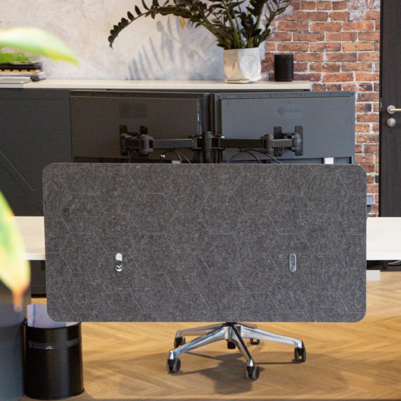 Gemaakt van 100% gerecycled PET-vilt en verkrijgbaar in diverse afmetingen, kleuren en leuke patronen. Creëer gemakkelijk privacy tussen werkplekken met dit geluiddempende bureaupaneel met bureauklemmen. Heb je een eigen ontwerp in gedachten? Neem dan contact met ons op voor een akoestisch bureauscheiding op maat.