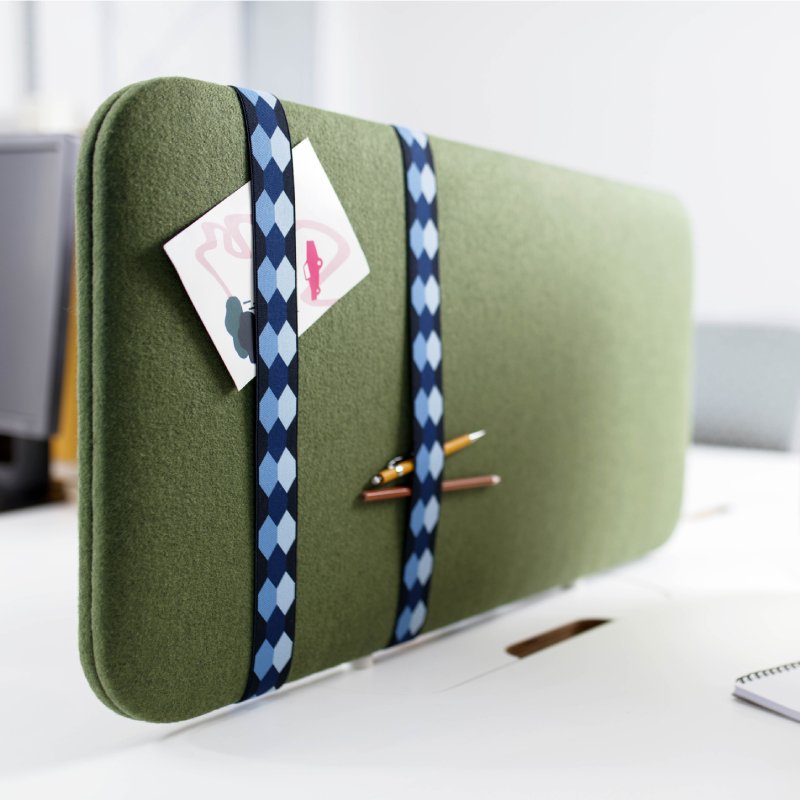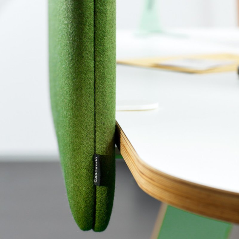 Akoestisch paneel Pillow Desk maakt het mogelijk om privacy te creëren in een groot kantoor door omgevingsgeluiden te neutraliseren. Dit akoestisch paneel is op meerdere manieren te bevestigen aan of op het bureau.