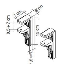 Bevestiging: De bladsteunen dienen aan de kopse kant van het akoestische paneel gemonteerd te worden en zijn instelbaar voor bladdiktes van 5 tot 70mm. Het akoestische paneel moet minimaal 10 cm onder het bladoppervlak steken.