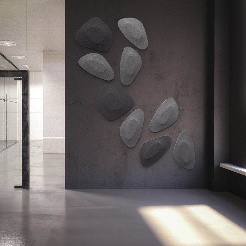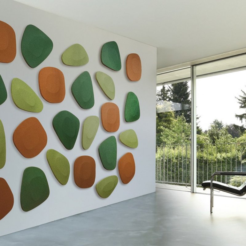 De organische vormen van dit akoestische muurpaneel zijn combineerbaar en geheel naar eigen smaak samen te stellen in kleur naar keuze. Dankzij de conceptuele verbondenheid met de natuur biedt het wandpaneel de mogelijkheid om elke keer weer unieke en verschillende oppervlakken te creëren.