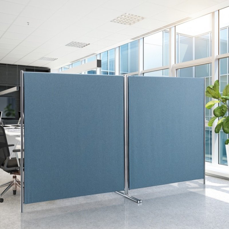 Akoestisch scherm Sepa heeft een strak design en is flexibel in het gebruik en is voorzien van een dubbelzijdige stoffering.U kunt het akoestische paneel uitstekend gebruiken als akoestische scheidingswand in de ruimte of tussen werkplekken in. Het vrijstaande geluiddempende paneel is mogelijk met een vast verchroomde voet of als u deze eenvoudiger wilt verplaatsen, met verchroomd verrijdbaar frame.
