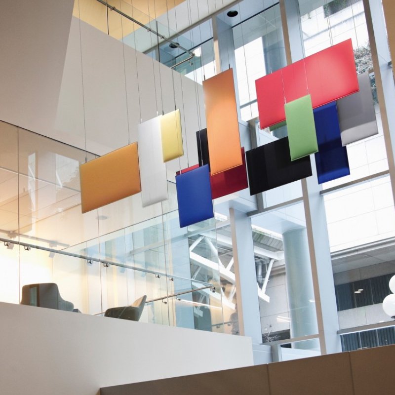 Het Baffle systeem is zeer flexibel en biedt voor veel situaties een passende oplossing. Door het ontbreken van ruimte tussen de bekleding aan de buitenzijde en het geluidsabsorberende binnenwerk is het onmogelijk voor stof, pollen en bacteriën om binnen te dringen in een Baffle paneel. Hierdoor zal het paneel altijd zijn akoestische waarde behouden. De panelen zijn 100% hygiënisch en zullen geen allergische reacties veroorzaken.