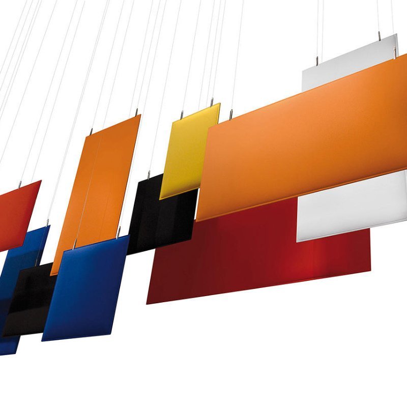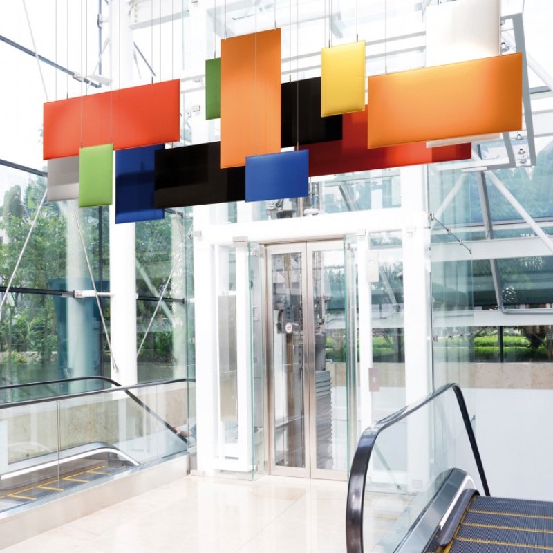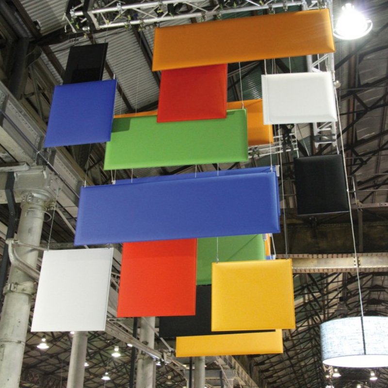 Akoestisch plafondpaneel Baffle is een hangend geluidsabsorberend paneel dat door middel van staalkabels of direct aan aan een plafond gemonteerd kan worden. De bevestigingskit incl. plafondplaat wordt standaard meegeleverd. De staalkabels (4m) van het akoestische plafondpaneel zijn in hoogte verstelbaar en bieden optimale flexibiliteit. De positie van de paneelklemmen zijn variabel waardoor eventuele leidingen en/of lichtpunten vermijdt kunnen worden.