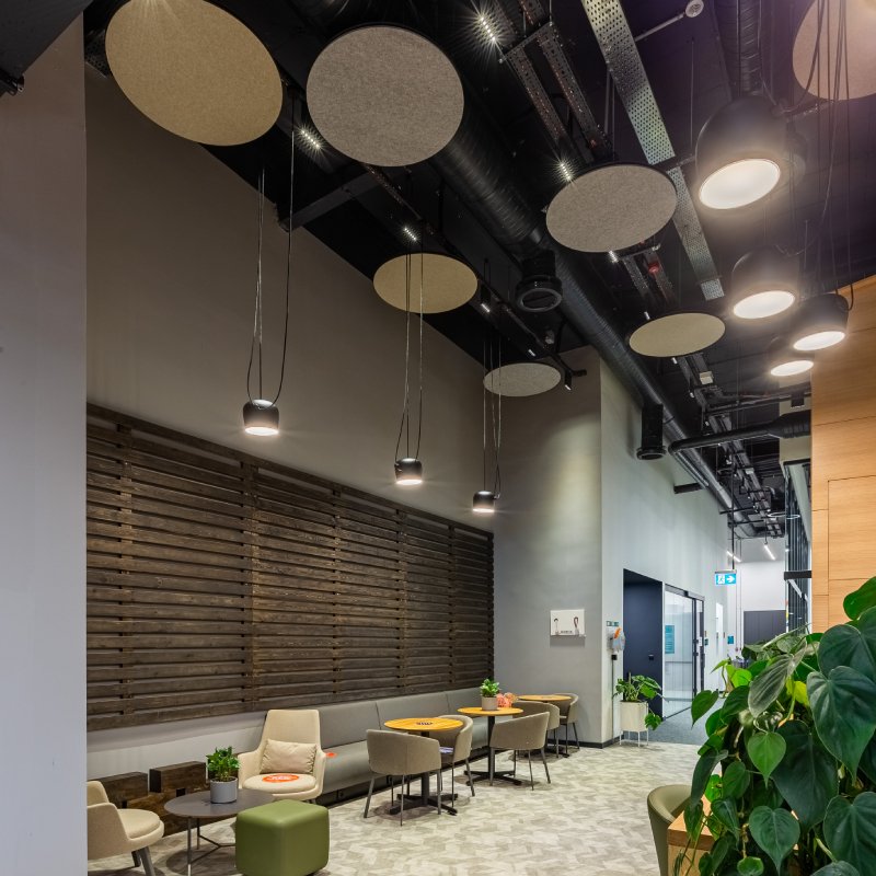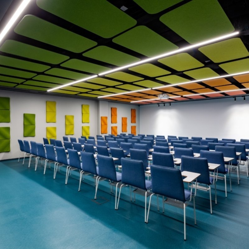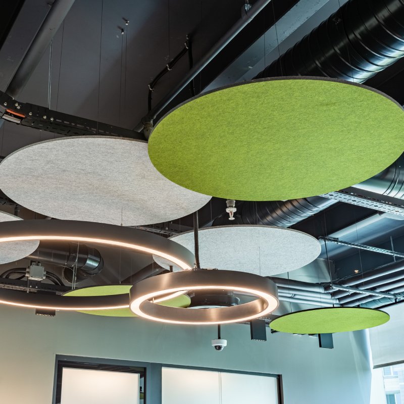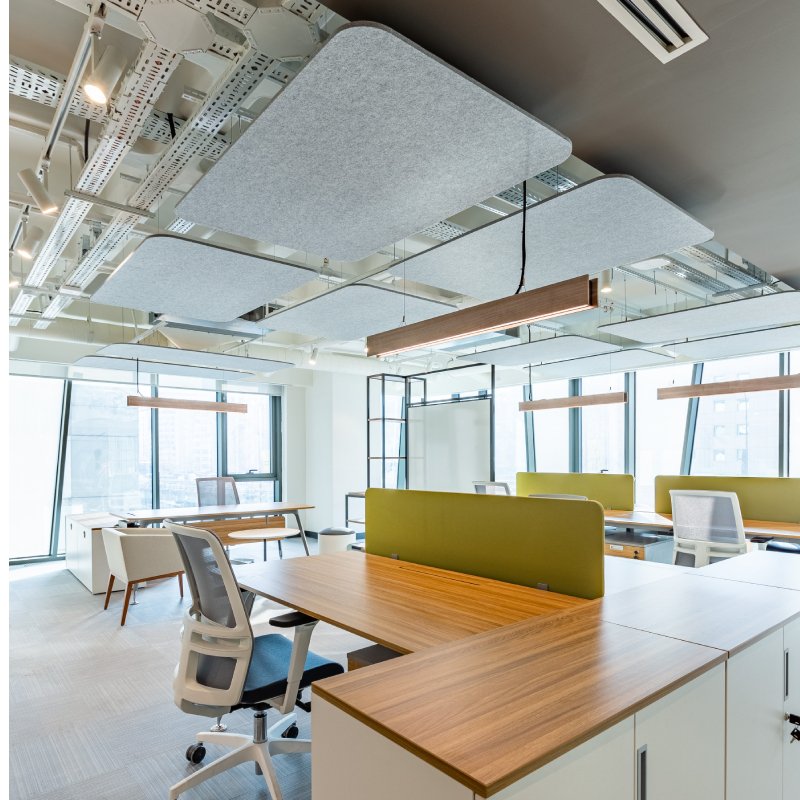 Akoestisch plafondpaneel Flat Cloud komt uit de Plativity collectie van Feltouch. Het geluidsabsorberend paneel is mogelijk in ronde, vierkante of rechthoekige vormen. Kenmerkend aan de geluiddempende plafondpanelen is dat ze eenvoudig, elegant en één van de meest dynamische modulaire en akoestische plafondsystemen zijn.
