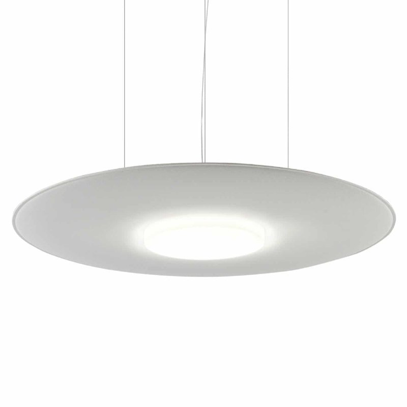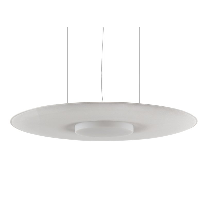 Akoestisch plafondpaneel Giotto Lux is een rond hangend paneel met verlichting. Het paneel dient aan het plafond bevestigd te worden door middel van 3 staalkabels met een totale lengte van 390cm. De hoogte van de kabels kunt u zelf bepalen. Combineer meerdere Giotto panelen voor een dynamische opstelling.