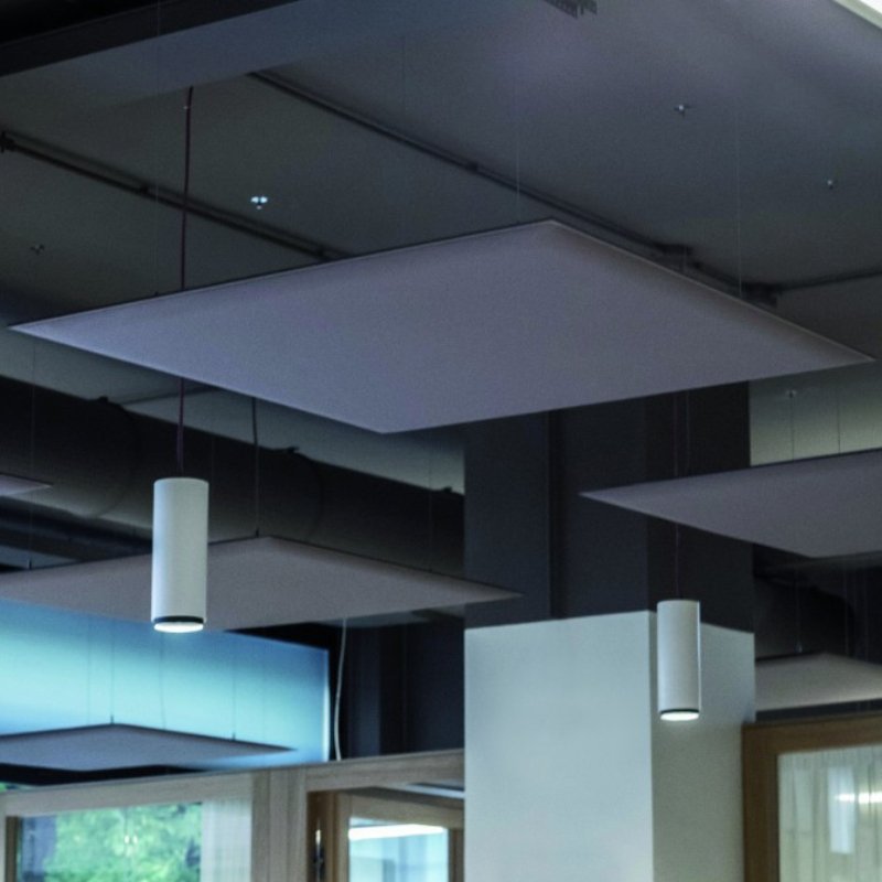 Akoestisch plafondpaneel Oversize Ceiling is een groot akoestisch paneel dat door middel van een frame of staalkabels aan het plafond gemonteerd kan worden. Oversize Ceiling is gecreëerd volgens de Snowsound technologie. Dit zorgt ervoor dat het paneel optimale akoestische prestaties levert. Door middel van de Snowsound technologie worden een tal akoestische problemen opgelost zoals nagalm en slechte spraakverstaanbaarheid.