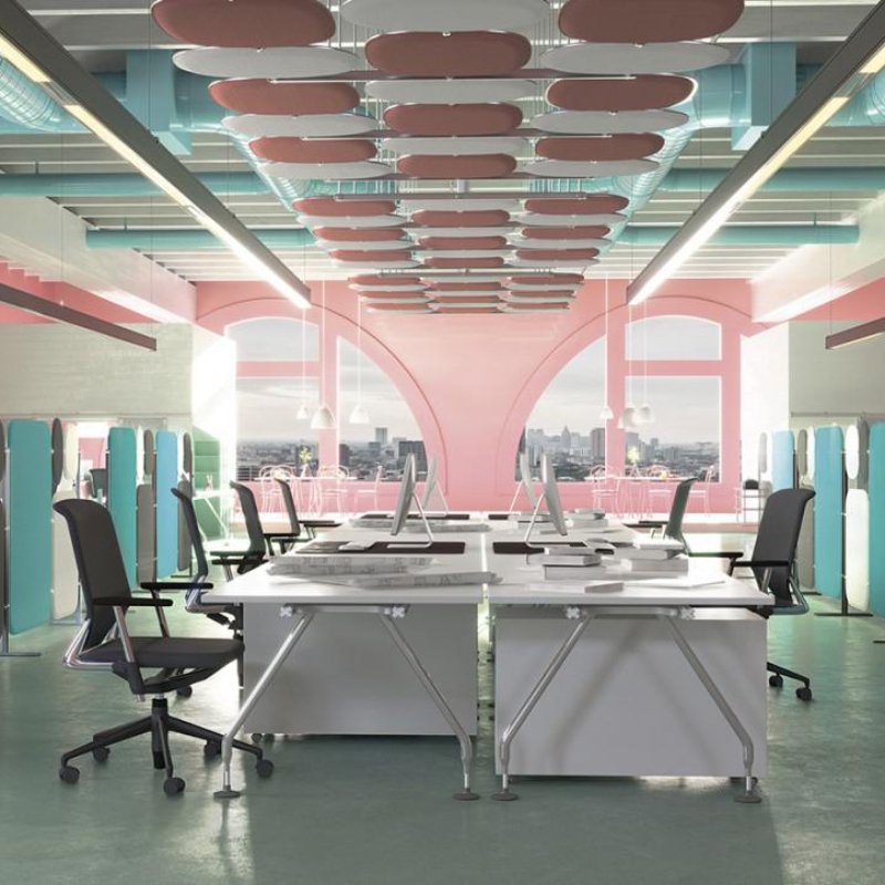 Snowgems kenmerkt zich door het stijlvolle ontwerp. Dit akoestische plafondpaneel is een efficiënte akoestische oplossing voor in uw werkomgeving die galm, spraakgeluiden, ongewenste omgevingsgeluiden op het kantoor (zoals typegeluiden) vermindert.