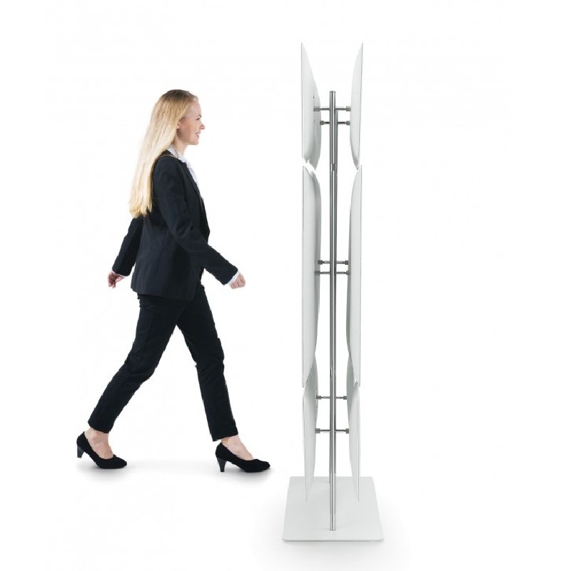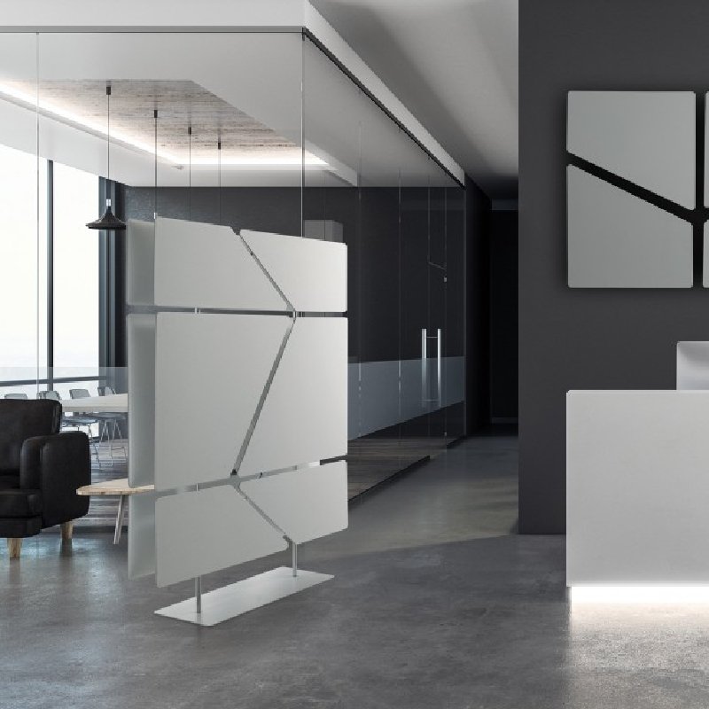 Akoestisch staand paneel Flat is een akoestische totem bestaande uit 12 akoestische panelen die door middel van een chroom stalen structuur aan elkaar zijn vebonden. Elk paneel kan geroteerd en gekanteld worden, op deze wijze kunt u de geluidswerende wand een speelsere uitstraling geven.