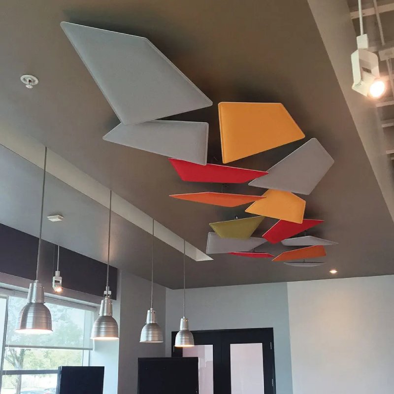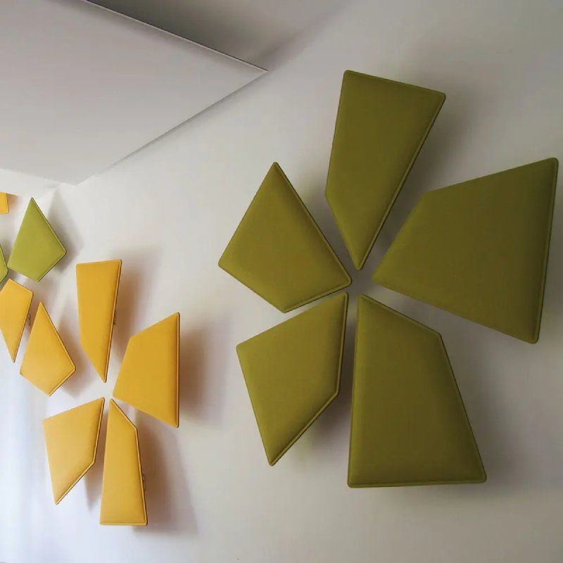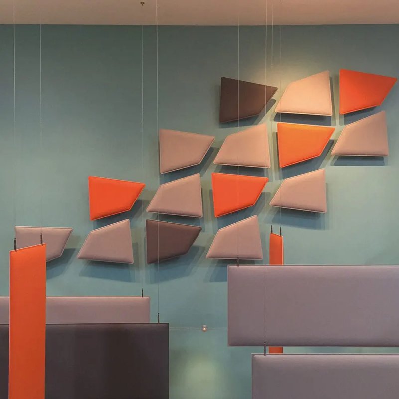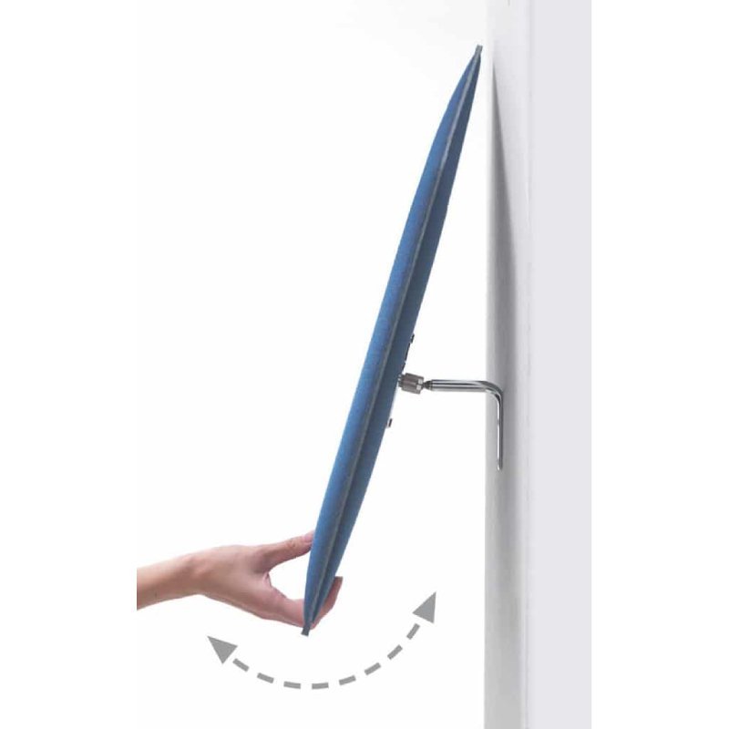 Akoestisch wand- of plafondpaneel Flap is een uitstekende en decoratieve oplossing voor uw akoestisch probleem. Flap kan dankzij het verstelbare montagepunt aan de steun verticaal en horizontaal gedraaid worden. Door deze mogelijkheid kunnen de panelen ‘fladderen’.