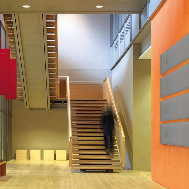 Het Mitesco systeem staat garant voor een hoge geluidsabsorptie, in het bijzonder voor de spraakfrequenties. De afwerking zorgt ervoor dat 100% van het oppervlak geluidsabsorberend is aan beide zijden.