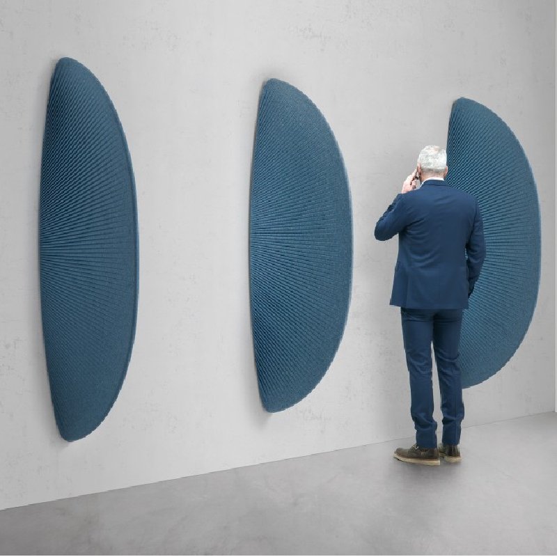 Akoestisch wandpaneel Pinna heeft een zeer stijlvol ontwerp en zorgt voor een omvangrijke verbetering in het akoestische klimaat. Het ontwerp van het unieke 3-D paneel lijkt op de vin van een grote vis, mede door de geplooide stof die om het paneel zit verwerkt, maar ook door het enorme geluidsabsorberend oppervlak.