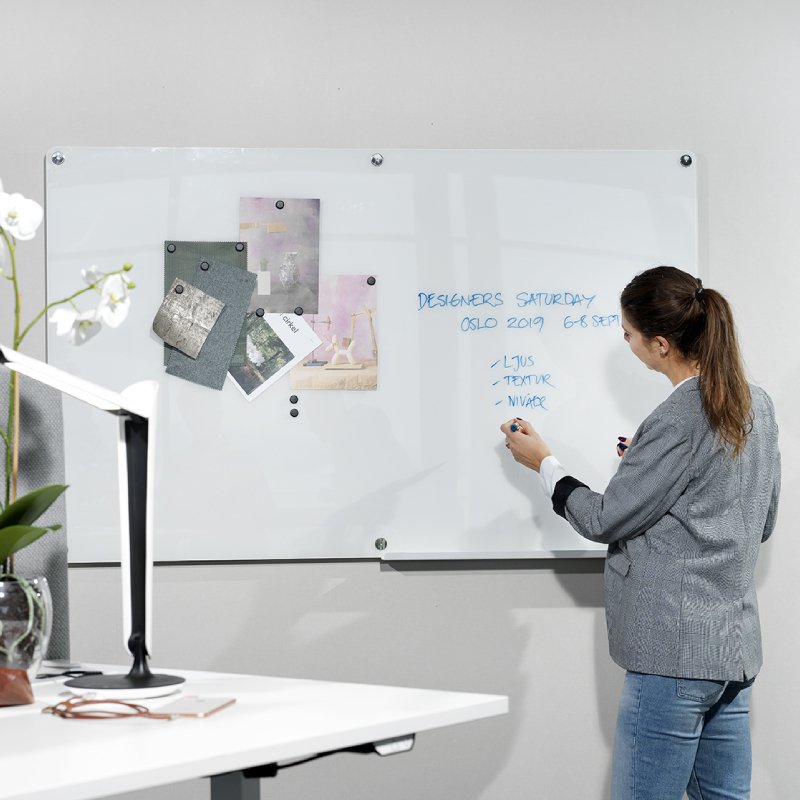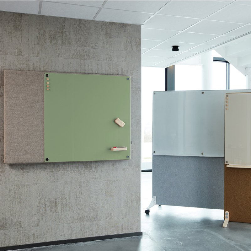 Het whiteboard bevestigt u aan het geluiddempende muurscherm. Ideaal voor in vergaderruimtes of vlak bij de werkplek voor brainstormsessies