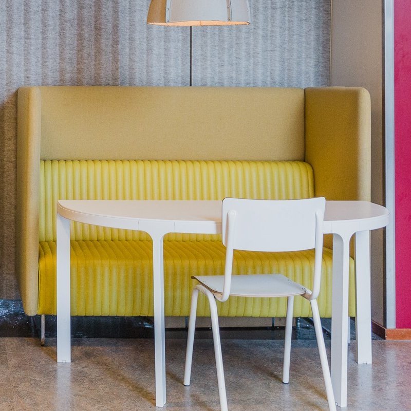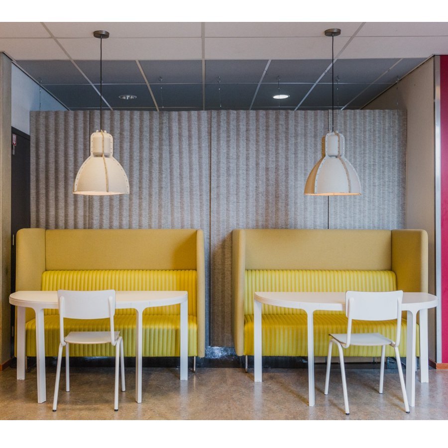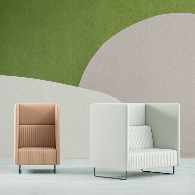 De akoestische zitmeubel biedt zitcomfort en een estetische uitstraling. Mona is voorzien van een metalen onderstel en een gestoffeerde zitting en panelen. Deze zijn mogelijk in diverse stofferingen en kleuren.
