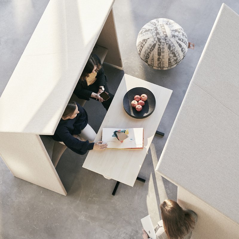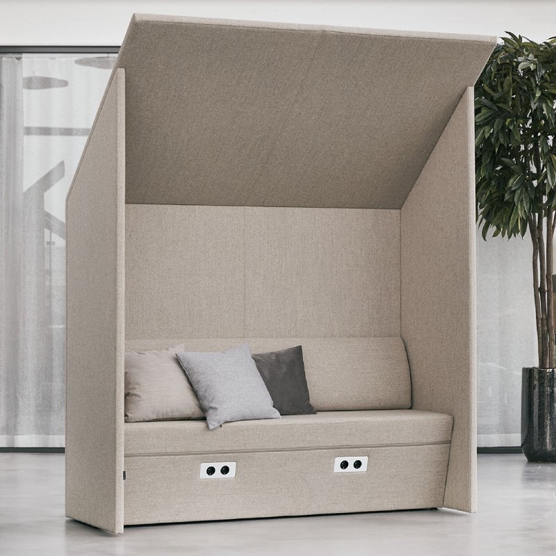U kunt deze moderne akoestische sofa met dak combineren met stroompunten die aan de voorzijde van het zitgedeelte zitten. Voor nog een comfortabele zit, kunt u de Time out sofa met een rugkussen kiezen.