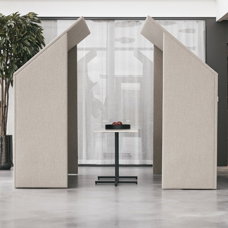 Door de hoge panelen en het dak heeft u het gevoel dat u in uw eigen privé omgeving zit en een momentje rust kunt pakken. De akoestische panelen bestaan uit 30mm dik geluidsabsorberend materiaal.