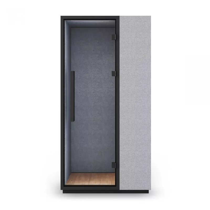 De akoestische unit biedt rust en concentratie die soms in een open kantoorinrichting kan ontbreken. De stille ruimte is eenvoudig te verplaatsen door stevige wielen onder de telefooncel te plaatsen.