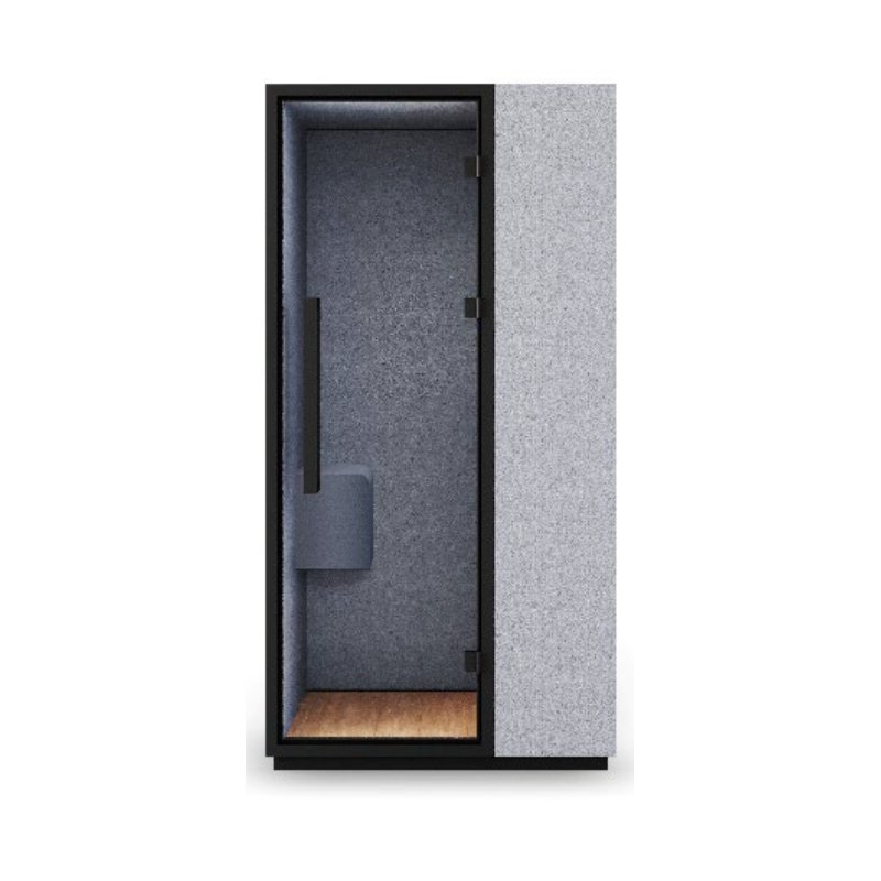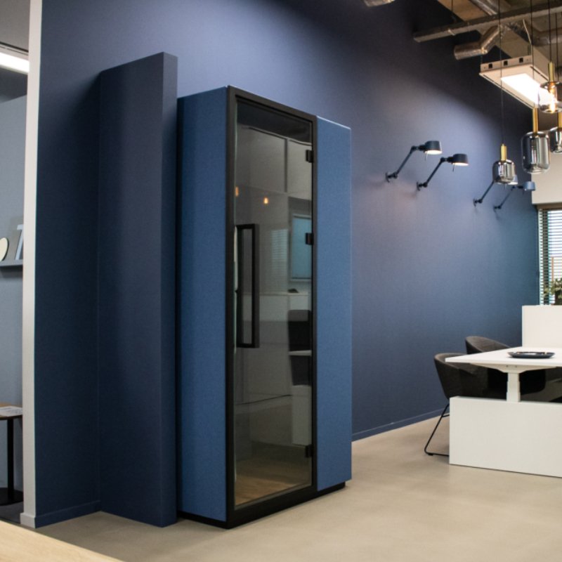 De akoestische belcel biedt een rustige plek waar je in alle privacy kunt werken/bellen zonder dat je last hebt van je omgeving. Door het geharde glas met akoestisch folie en (gestoffeerd) frame worden geluiden zowel binnen-als buiten gedempt.