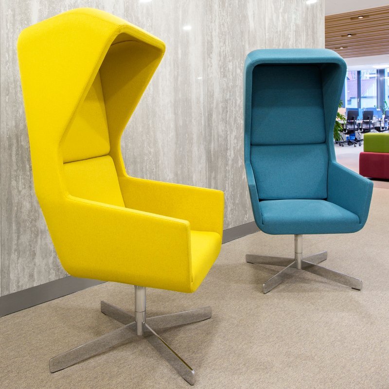 Akoestische fauteuil Positiva is een elegante en akoestische draaibare loungestoel. De fauteuil biedt met zijn hoge rug, het dakelement en de armleggers extra comfort en een geluiddempend effect. Fauteuil Positiva is ideaal als u even in alle rust een telefoontje wilt plegen, wilt ontspannen of even alleen op uw laptop wilt werken.