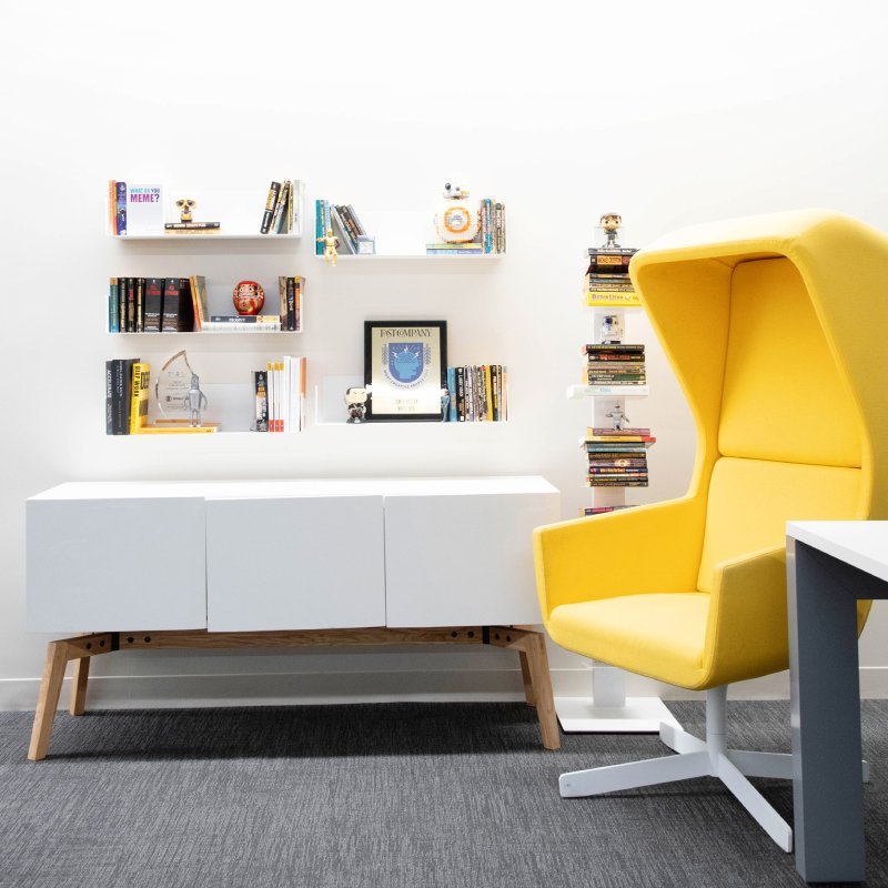 Het dakelement biedt naast een akoestische oplosing, ook privacy. Het bijzondere design van de akoestische fauteuil maakt Positiva een perfecte en speelse toevoeging aan het interieur op kantoor en in uw loungeruimte. De fauteuil is verkrijgbaar in verschillende kleuren.