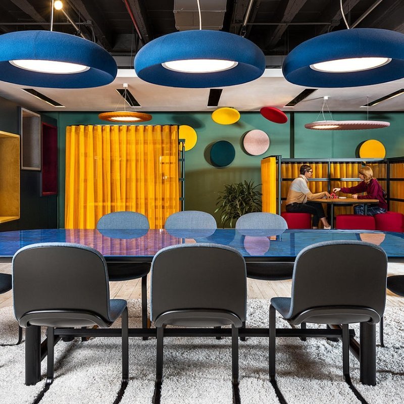 Moderne akoestische verlichting in de vorm van BuzziDome.