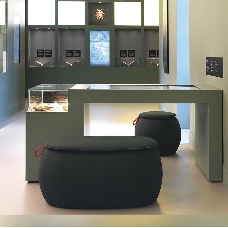 De ovale poef heeft een houten constructie met daarin een geluidsabsorberende vulling. De speciale en gepatenteerde Snowsound Fiber stoffering is het geheime wapen tegen ongewenst geluid.