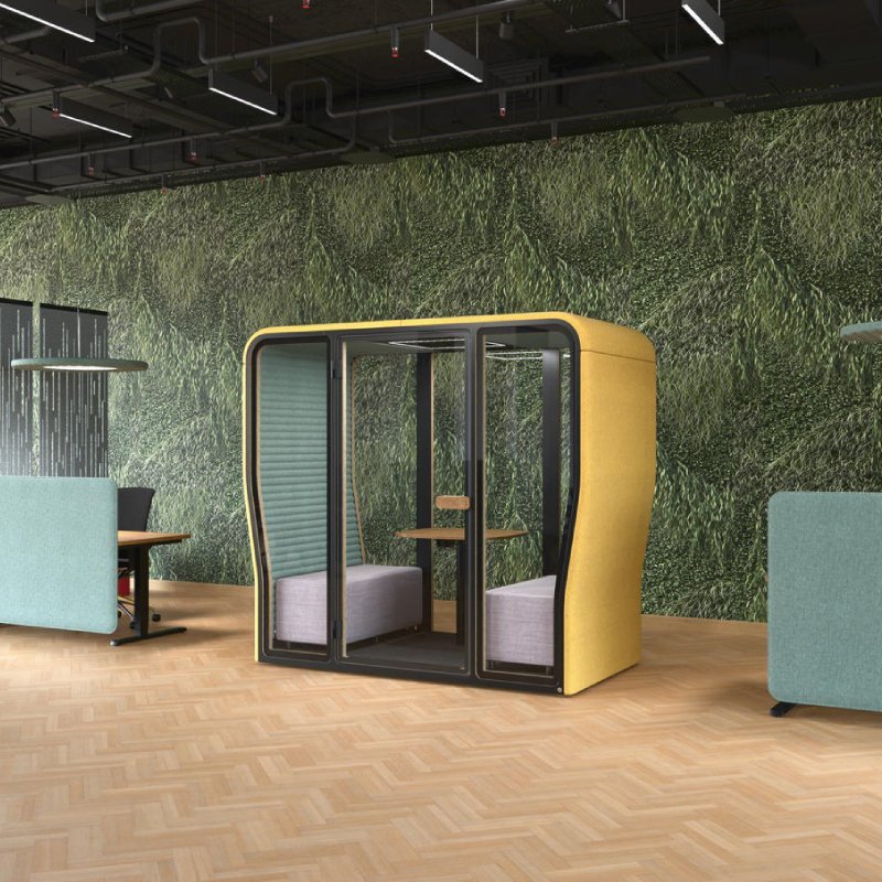 Door het compacte formaat past BuzziNest gemakkelijk in een bestaande kantoorruimte.