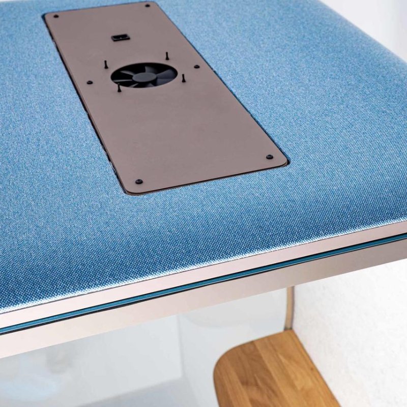 De akoestische overlegplek is gemakkelijk te monteren door twee personen en nog gemakkelijker te verplaatsen door middel van de vier wielen.
