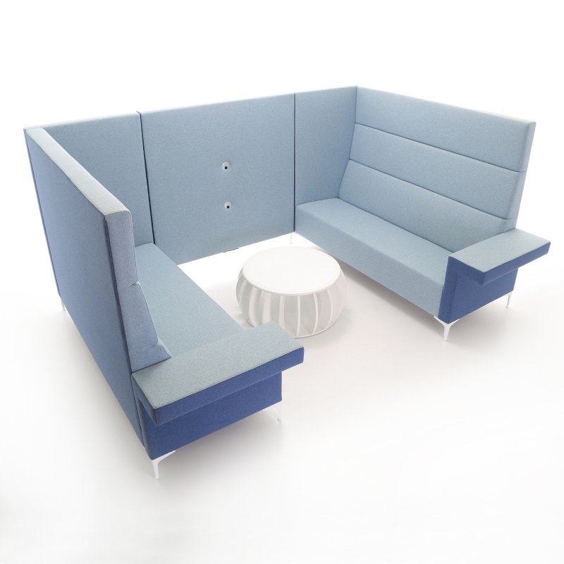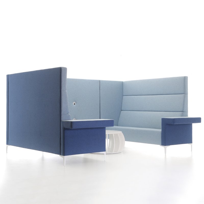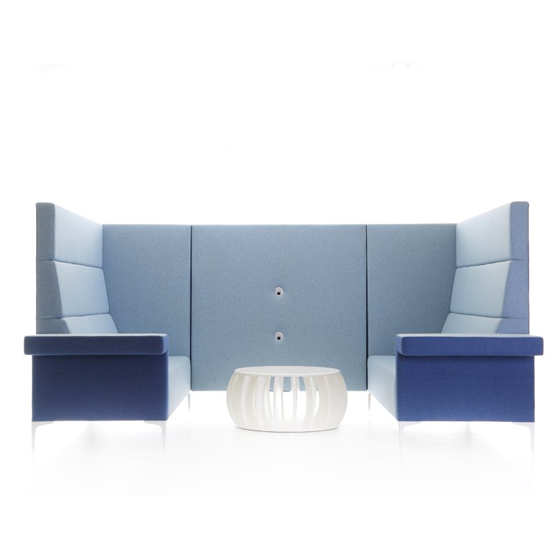 Concentratie werkplek Cara Highline is ook leverbaar met hoge panelen aan de zijkant van de bank. De akoestische waarde is bij dit model hoger door het afschermen van de zitplekken.