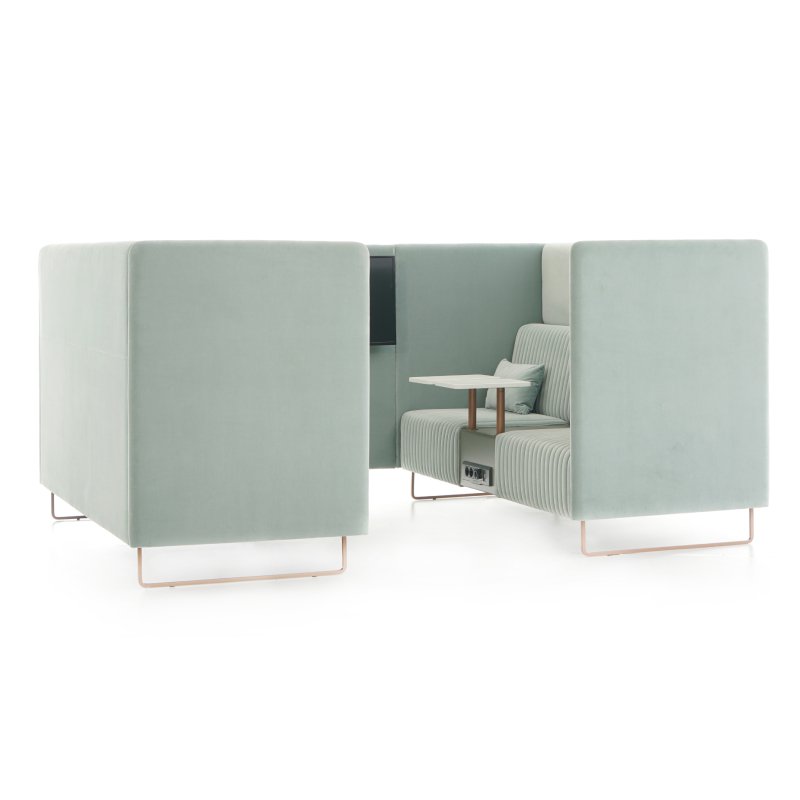 Neem plaats in de akoestische overlegplek Mona en u kunt rustig werken en vergaderen, zelfs in grote en open kantoorruimtes. Mona zorgt voor een comfortabele werkplek met voldoende privacy en door het akoestische materiaal worden omgevingsgeluiden gedempt.