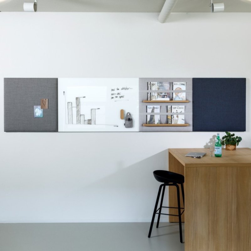 Deze akoestische panelen Pillow Grid, zijn multifunctioneel in gebruik. Niet alleen hebben de panelen een geluidsabsorberend effect waardoor omgevingsgeluid gedempt wordt, door de vele beschikbare accessoires ook nog eens heel handig. Kies bijvoorbeeld voor een paneel met garderobe stang en jashaken waardoor er plek vrij komt voor jassen en colberts. Een paneel met whiteboard biedt de mogelijkheid notities en brainstormen te noteren. Panelen met accessoires zijn standaard in akoestische klasse C. Neem contact op voor alle beschikbare stoffen, kleuren en accessoires.