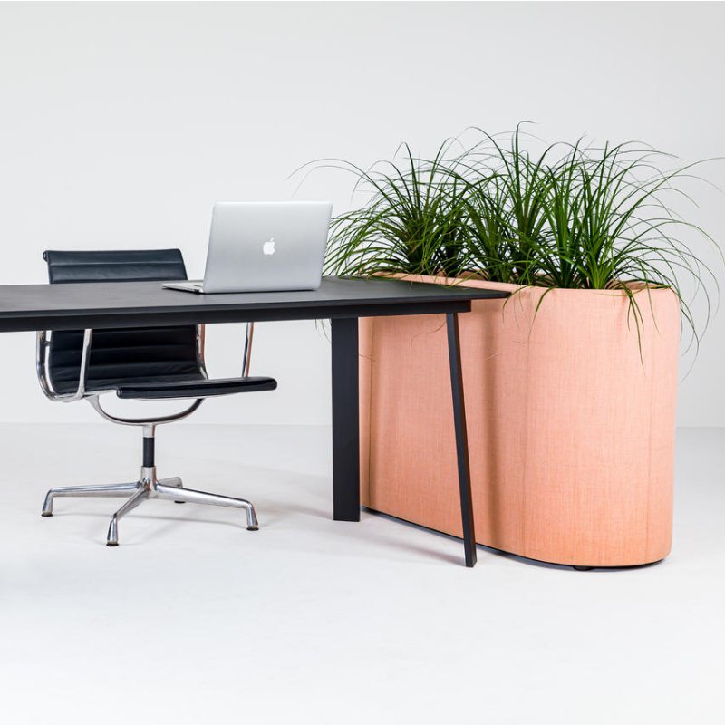 De geluiddempende room divider is rondom gestoffeerd en verkrijgbaar in diverse kleuren. De plantenbak is voorzien geluidsabsorberend materiaal wat bijdraagt aan een prettige akoestiek op de werkvloer.
