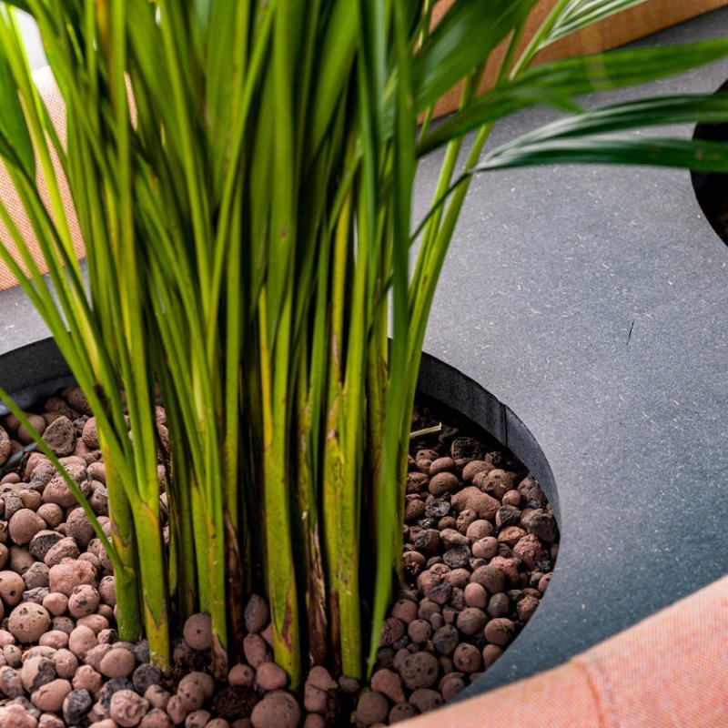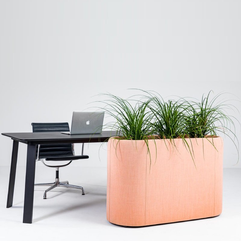 Deze akoestische plantenbak fungeert als ruimteverdeler, plantenbak en akoestische oplossing met een stijlvolle uitstraling.