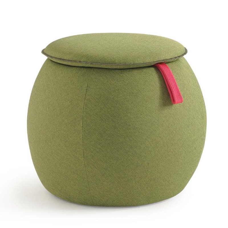 Snowpouf is leverbaar in diverse mooie kleuren. Het rode stoffen lint kan worden gebruikt om de poef gemakkelijk te verplaatsen.