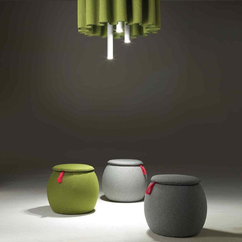 Bekijk de ovale variant, akoestische hocker Snowpouf.