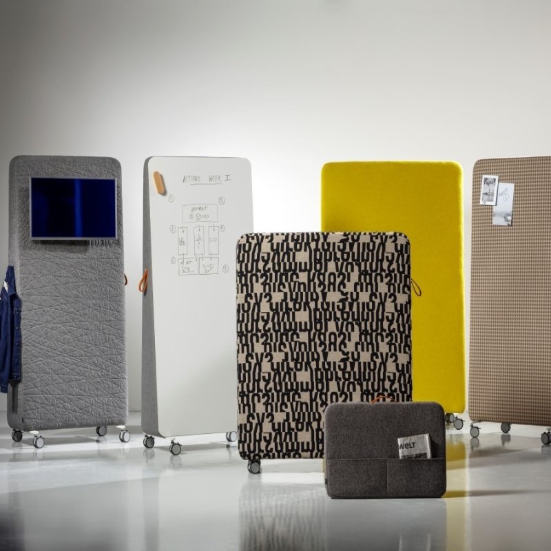 Deze praktische kamerverdeler is uit te breiden met een whiteboard of houder voor lcd scherm, op deze manier wordt presenteren en pitchen wel heel leuk gemaakt! Trunk is in verschillende afmetingen en stoffen leverbaar. Plaats meerdere Trunks in de kantoorruimte en creëer op deze manier persoonlijke werkruimtes.