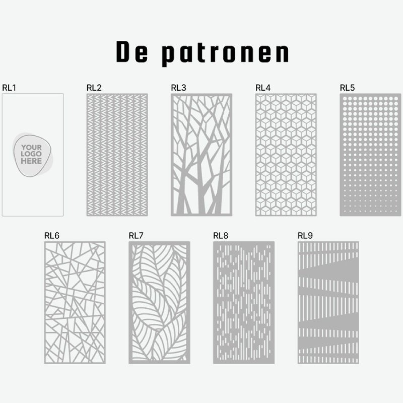 Let op: roomdivider Luxe bestaat uit dubbele panelen, waarbij het patroon slechts aan één zijde zichtbaar is.