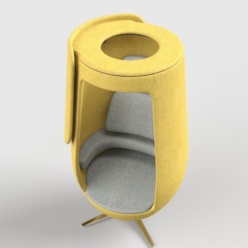 Akoestische stoel A11 is een futuristische belstoel geschikt voor op kantoor als u rustig wilt bellen. Deze meubel heeft een cilindervorm dat is afgeleid van een cocon wat u een comfortabel en afgeschermd gevoel geeft.