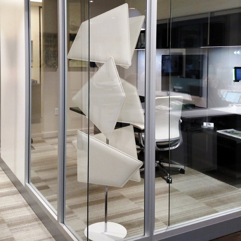 Akoestische totem Flap is een uitstekende en decoratieve oplossing voor uw akoestisch probleem. De totem bestaat uit 6 akoestische panelen die gemaakt zijn volgens de gepatenteerde Snowsound technologie. Hier wordt gebruik gemaakt van verschillende dichtheid waardoor het paneel in staat is tot selectieve absorptie. Hierdoor komt er vrijwel geen geluid door en wordt er een optimale akoestische situatie op de werkvloer gecreëerd.